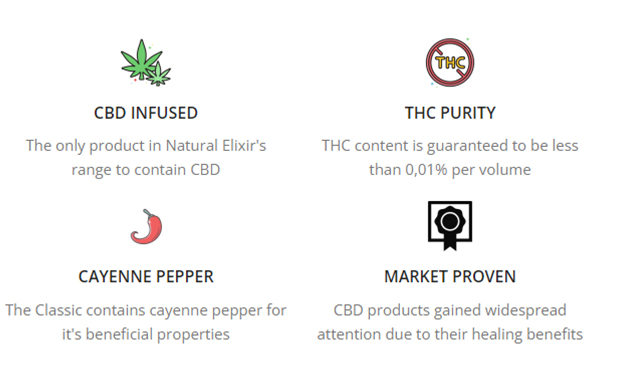 Natural Elixir CBD INFUSED brings valuable healing properties associated with CBD extract, including: relief from chronic pain, regulating and helping prevent diabetes, helping depression, regulating seizures, helping treatment for glaucoma, alleviates anxiety, slows Alzheimer’s, reduces arthritis pain, offers relief from MS, treats inflammatory bowel disease, and reduces side effects linked to hepatitis C.