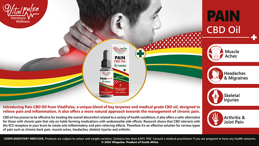 Introducing PAIN CBD Oil from Vital Pulse, a unique blend of key terpenes and medical grade CBD Oil, designed to relieve pain and inflammation. It also offers a more natural approach towards the management of chronic pain.